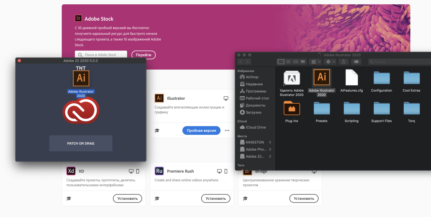 Adobe Photoshop 2020应用程序到 Zii 的PATCH OR DRAG处。